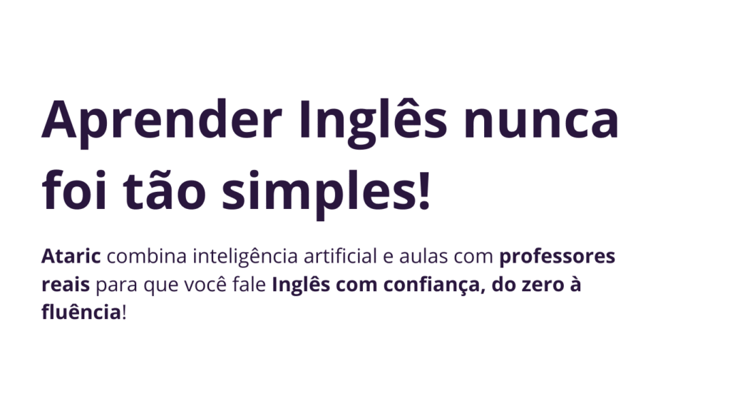 Esqueça os cursos longos e cansativos. Com o ATARIC, você aprende inglês de forma prática e natural — assistindo aulas com professores reais e praticando sua fala com uma IA que entende você e te ajuda a evoluir!